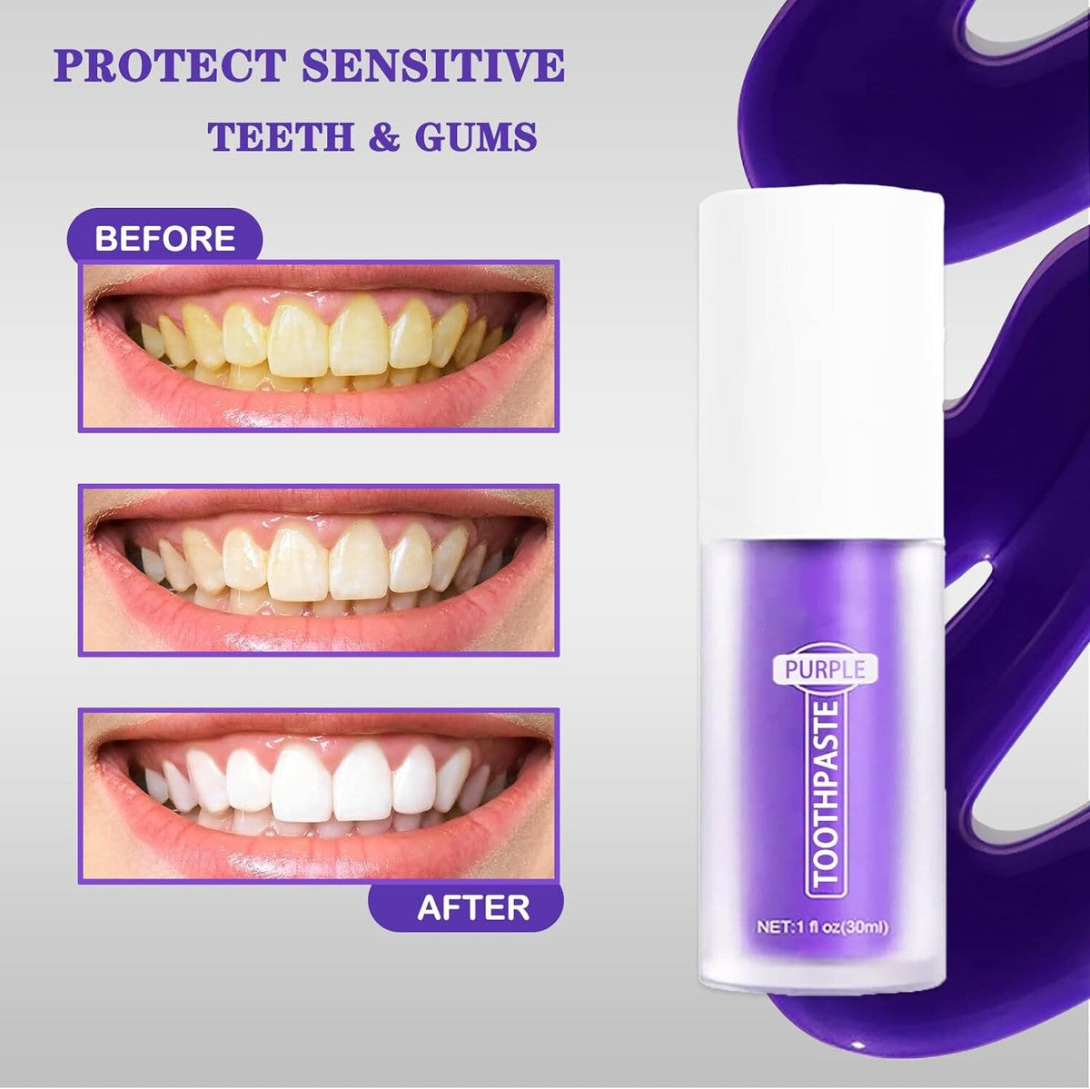- 【Convenient And Easy To Use】Just apply purple whitening toothpaste and toothbrush for 2 minutes, and you will see how quickly your teeth look brighter!